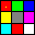 - 周囲の8パネルをクリックするたびに(赤>緑>青>黄>紫>水色>白>赤...)の順に色が変わっていきますので、全てのパネルを中央のパネルと同じ色にしてください。